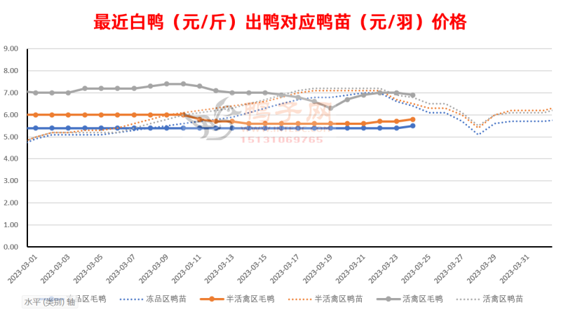 白鸭:区域性调整,北涨南跌; 半番(M18):微幅下跌; 麻鸭:微幅下跌; 活禽区白鸭下跌,北方上涨,这样就能托起全局,从而保障了白鸭上游环节。