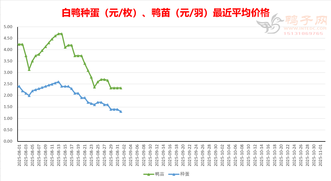 麻鸭鸭苗、半番鸭苗报价下跌,白羽苗报稳。