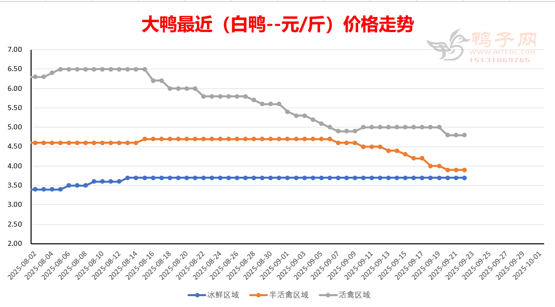 今日麻鸭鸭苗报稳,其他鸭苗报价下跌。白鸭种蛋报跌,实蛋孵化情绪一般,包苗保价蛋价下滑,零星稀淡。淘汰老鸭稳,淘鸭稀淡。养殖环节活禽大鸭弱态,养殖利润稀薄。国庆、中秋双节货已备完,产品价格没有很实质性的起色。